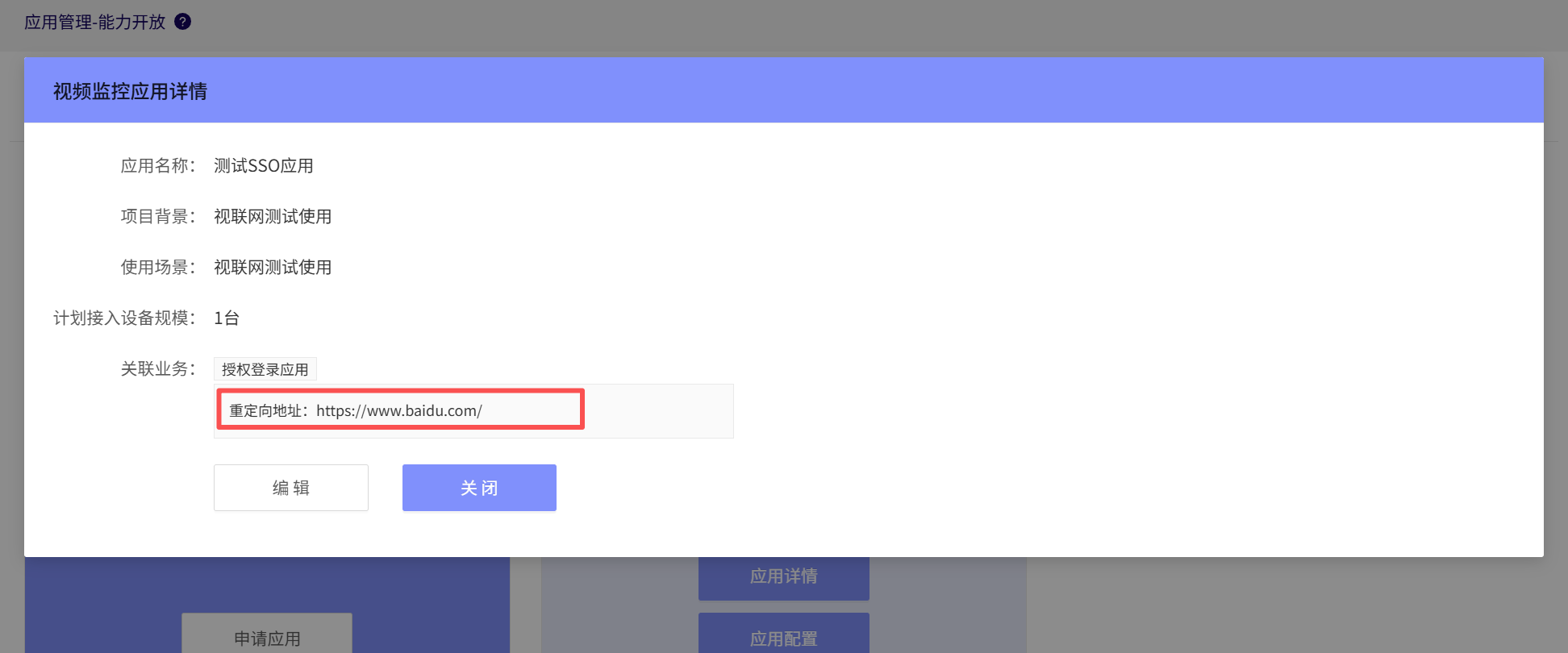 进入 控制台->能力开放申请->授权登录应用SSO对接,选择对接的应用。